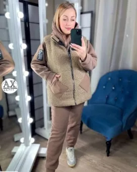 шикарный костюм тройка новая цена по 1100 руб старая цены 1600рxxx цвета без выбора можете приобрести в наличии 46 48 50 52 54 56 ткань двойка на флисе жилетка барашка с подкладкой распродажа по 1100 руб внутренний костюм идут на молнии
