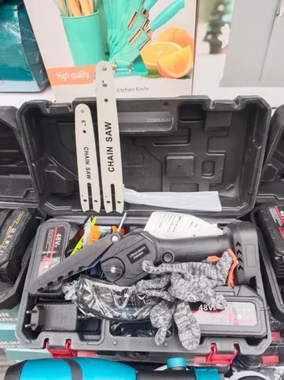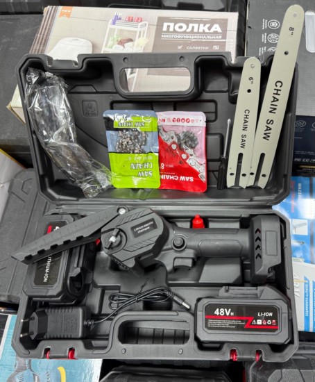 цепная аккумуляторная ручная мини пила с двумя аккумуляторами - это