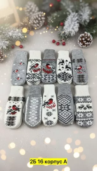шерстяные варежки женские новогодние