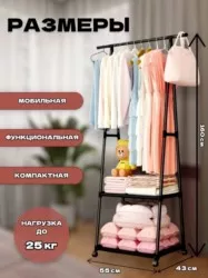вместительная, удобная и прочная ,высотой 150 см., выдержит нагрузку одежды и обуви до 35 кг. ширина напольной вешалки 110 см. глубина 41 см. развесив одежду на плечиках вы обеспечите их безупречный внешний вид. высота от нижней полки для обуви до штанги 128.5 см, позволяет вешать одежду любой длинные: платье, пальто, халат, плащ, полотенца. вешалка устойчивая, ножки не скользят.