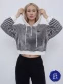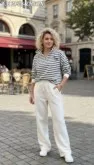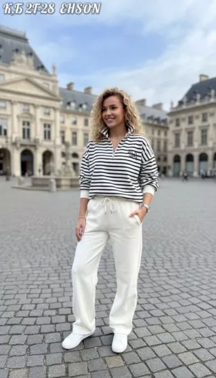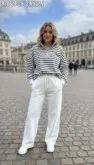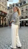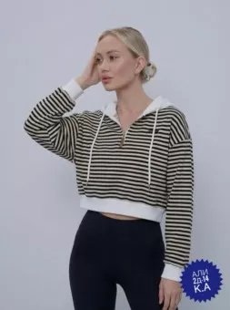 верх - уютный джемпер с полосками: будто модный моряк сбежал из офиса.