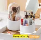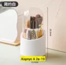 вращающийся органайзер с крышкой для быстрых сборов, все инструменты на виду и под руку. вертикальный чехол для косметики и кистей. все кисти в отдельном отсеке, помады, карандаши для губ, глаз и бровей. туш, консилеры и другие средства. устройство представ