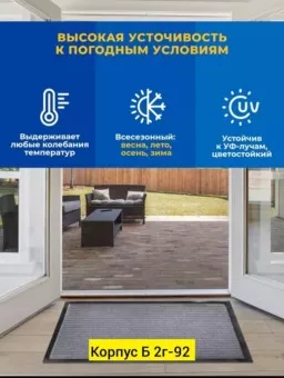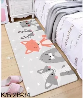 ковер безворсовый, моющий, легко чистится, не имеет запаха, износостойкий, не выцветает.