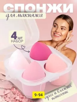спонжи для макияжа предназначены не только для нанесения тонального крема и консилера, но и для нанесения румян, закрепления макияжа пудрой, оформления глаз тенями и вообще для сухих текстур. в наборе 4 спонжа для макияжа.