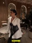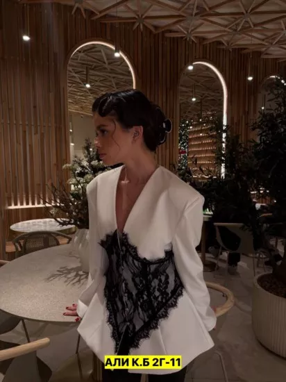 размеры 42-44-46 размеры: s, m (42,44,46) цена штучно: 2500руб получили повтор пиджак, барби цена оптом: 2300руб (упак. 4шт=9200руб) lace corset blazer new drop белый пиджак с эффектной кружевной вставкой-корсетом - акцентный образ для вечера и выхода