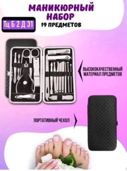 набор для маникюра и педикюра 19в1 включает в себя множество инструментов, которые позволяют выполнять различные процедуры ухода за ногтями, кожей рук и ног.