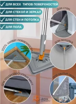 механизмом - идеальный помощник по дому. в из микрофибры, скребок, держатель для швабры, щетка для очистки насадки. длина ручки 138 см. размер насадки 26х26х26 см. преимущество швабры - самоотжимающаяся. вы можете легко выжать воду из насадки без усилий. это сокращает время уборки. использование швабры с отжимом гарантирует чистые и сухие руки. одним движением руки лопасти складываются, а насадка отжимается. швабра подходит для сухой и влажной уборки. универсальная - подходит для разных поверхностей: плитка, линолеум, кафель, деревянные полы, ламинат, окна. насадка крепится к основанию швабры на петли. тонкая конструкция и поворот на 360 градусов позволяют убирать в труднодоступных местах. равномерный прижим позволяет делать уборку без разводов. насадка из микрофибры впитывает воду, хорошо крепится и не оставляет ворсинок. щетка очищает насадку от мусора. держатель позволяет хранить швабру вертикально. швабра изготовлена из прочного пластика и нержавеющей стали. создана для удобной ежедневной уборки без ведер.