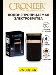 электробритва cronier cr-827 это современный прибор для комфортного и аккуратного бритья. благодаря водонепроницаемому корпусу бритва подходит как для сухого, так и для влажного бритья с пеной или гелем. эргономичный дизайн с прорезиненной поверхностью обеспечивает удобный хват и безопасность при