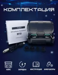 комплектация: беспроводные наушники - 2 шт; силиконовые амбушюры (3.