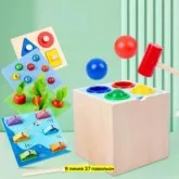 стучалка с молотком сортер куб монтессори 5 в 1
