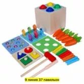 игровой набор - монтессори куб 5 в1 -включает в себя 5 самых популярных игрушек для развития малышей: магнитные червячки, магнитная рыбалка, сортер морковки, стучалка и молотком по шарикам и пазл геометрии с удобными ручками.