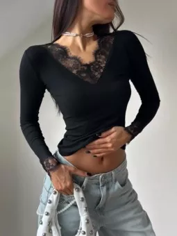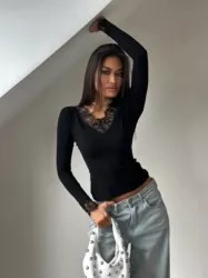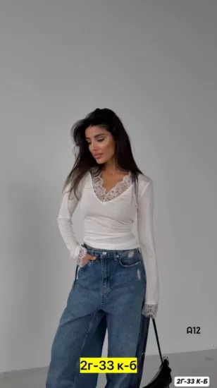 лонгслив, ткань цена оптом: 900руб (упак. 4шт=3600руб) женственный лонгслив с v-вырезом и кружевом по горловине и манжетам - идеально под джинсы, юбки и пиджак. цена штучно: 1100руб размеры: единый (42-48) расцветки: белый, черный, бордо, шоколад, красный