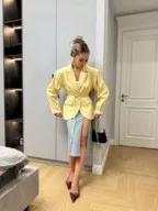 цена штучно: 2000руб цена оптом: 1800руб (упак. 4шт=7200руб) размеры 42-44-46 пиджак, барби размеры: s, m.(42,44,46) акцентный пиджак с объeмными рукавами и поясом: делает талию, образ - дорогим и стильным.