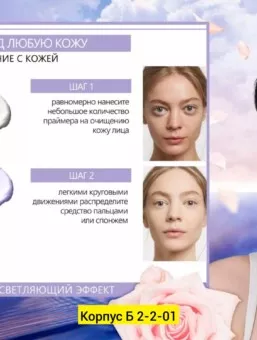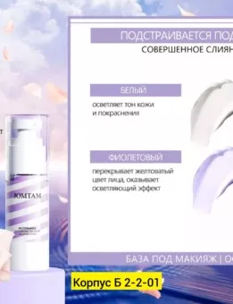 бежевый оттенок мягко корректирует тон кожи: маскирует покраснения и мелкие неровности, визуально сужает поры и придает естественное сияние. крем удерживает макияж на протяжении дня, предотвращает скатывание тонального средства и обеспечивает более ровное покрытие.