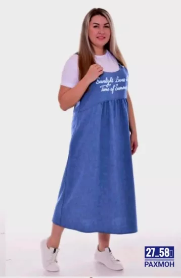 в наличии ест снова радует вас новый коллекция 2-ка сарафан + футболки ткань + итальянка цена 1000р размеры ( 52 54 )(56 58)( 60 62) качество пошив очень хороший. длина model 120см успеете приобрести