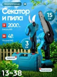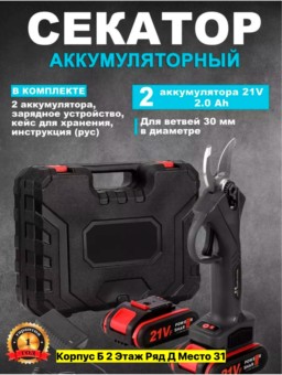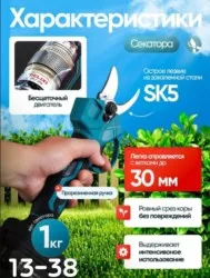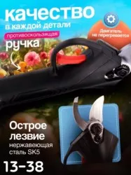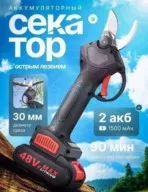 качественные электрические ножницы для сада и огорода. легкий и портативный электро секатор прост в использовании. электрические кусторезы и секаторы предназначены для обрезки и подравнивания ветвей в садах, огородах, виноградниках и т. д. садовый режущий инструмент прост и удобен в эксплуатации, а его эффективность в 8-10 раз выше, чем у традиционных ручных секаторов. также качество обрезки значительно выше. функции: быстрая резка без усилий, небольшой размер, беспроводная конструкция, удобство переноски, повышение эффективности работы. противоскользящая ручка соответствует инженерному дизайну, проста в использовании и экономит усилия. обладая тонким эффектом рассеивания тепла и малошумной конструкцией, секатор для сада может обеспечить длительный срок службы. садовые ножницы обладают режущим лезвием из стали, что отличает их высокой твердостью, коррозионной стойкостью, износостойкостью. максимальный диаметр веток - 30 мм. литиевая батарея большой емкости 48в 9500 мач, время перезарядки 1-1,5, время работы 4-5 часов. дополнительный аккумулятор в комплекте. секатор аккумуляторный садовый может использоваться для сбора урожая, садового дизайна, обрезки цветов и т. д. повысьте эффективность вашей садовой работы с элекстическим инструментом. наш садовый аккумуляторный секатор служит для легкой и точной обрезки растений. больше не нужно беспокоиться о проводах. наш аккумуляторный секатор.