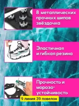 антискользящие ледоступы на обувь 8 шиповзима это волшебное время года. можно гулять на морозном воздухе, играть в снежки, кататься на санках и лепить снеговиков. но, помимо веселья, зимой нас поджидает опасность. ведь становится скользко и дороги зачастую превращаются в катки. даже если продумыва