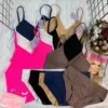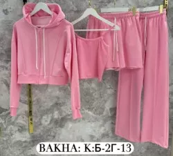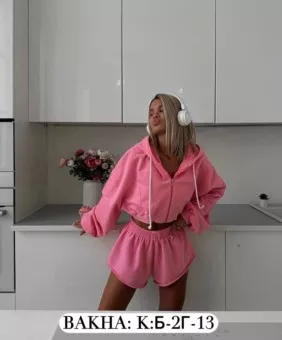 в комплект входят укороченная худи на молнии, топ, брюки и шорты.