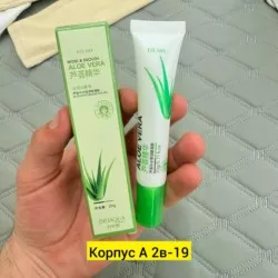 увлажняющий крем гель для век с экстрактом алое веракрем для век с экстрактом алоэ хорошо увлажняет кожу вокруг глаз. крем в маленьком тюбике поступает в продажу в картонной коробке с изображением листьев алоэ. для выдавливания минимального колич
