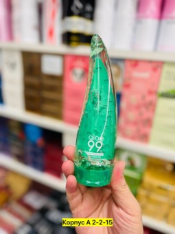 универсальный гель holika holika с соком алоэ в составе. средство подходит для увлажнения лица и тела, в качестве успокаивающего средства после бритья или солнечных ванн.
