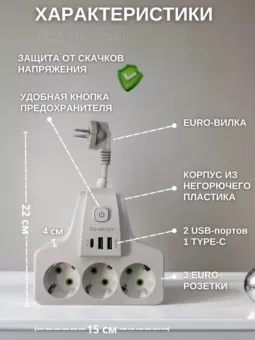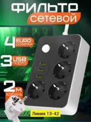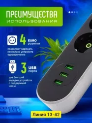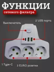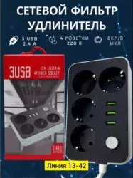 удлинитель сетевой - это мобильный вариант электророзетки с встроенной защитой от перегревания или короткого замыкания. стабилизатор обеспечивает постоянное напряжение электротока. сетевой фильтр с usb cx - включает в себя 3 порта usb-a плюс 4 розетки под стандартные электрические вилки на 220 в. тройник для розетки универсальный для всех устройств. сетевой фильтр с предохранителем имеет пониженный нагрев, высокий уровень безопасности. верхняя огнестойкость корпуса сетевого фильтра с предохранителем пк и абс. интеллектуальная технология super charge tm быстрой зарядки через юсб.