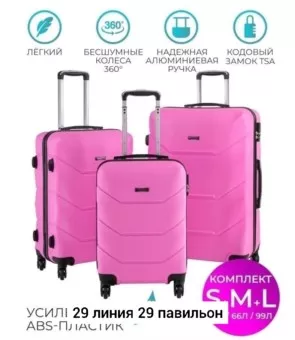 набор из 3-х чемоданов на 4 колеса, которые могут вращаться на 360.