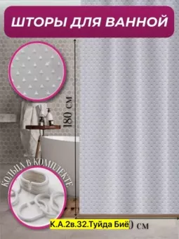 комплектация штора для ванной 180х180 3d водонепроницаемая в ванну