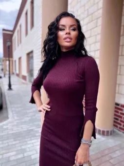 платье из мягкой вязаной ткани, идеально подчеркивающее фигуру. приятная фактура с вертикальной рубчиковой вязкой визуально вытягивает силуэт. модель с длинными рукавами и округлым вырезом