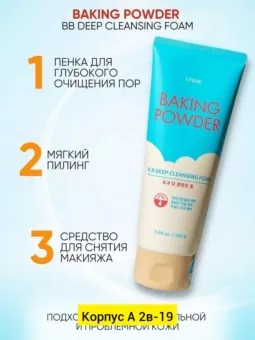 пенка для умывания baking powder bb deep cleansing foam, 160 мл изначально, продукт был создан для умывания и глубокого очищения пор, но после популяризации бибикремов, была выпущена серия для их смывки. чтобы сделать средство максимально полезным, его сделали универса