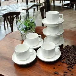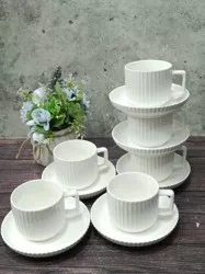 чайный набор на 6 персон выполнен из высококачественного керамика - материала безопасного для здоровья и надолго сохраняющего тепло напитка. набор состоит из 6 кофейных чашек, 6 блюдец. элегантный классический дизайн с геометрическим рисунком делает этот чайный набор прекрасным украшением любого стола. чайный сервиз аккуратно упакован в подарочную упаковку и может стать красивым и практичным подарком для женщин: мам, бабушек, подруг и коллег. подходит для мытья в посудомоечной машине.