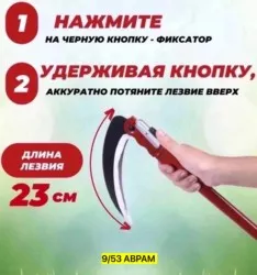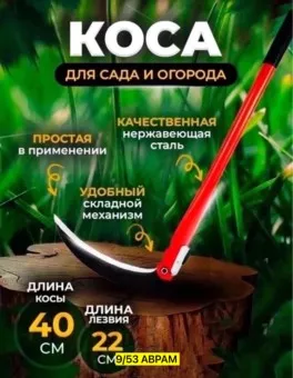 ножницы, металл серп мини ручной садовый складной коса с ручкой для травы металлическая 40см, длина лезвия 23см для мужчин и для женщин цена оптом: 130руб (упак. 10шт=1300руб) цена штучно: 140руб коса выполненная из качественного металла, легко справляется с высокой травой и сорняками.удобная мини-коса подходит для скашивания травы на дачном участке.