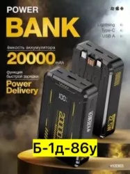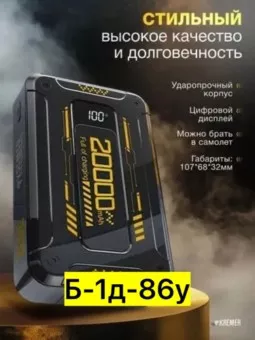 powerbank 20000, повербанк с быстрой зарядкой, черный, kremer