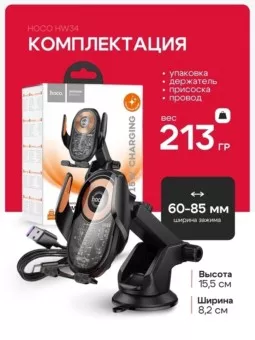 держатель для телефона hoco автомобильный держатель для телефона hoco hw34 черный 15w с беспроводной зарядкой.