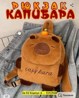 плюшевый рюкзак капибара для девочек, милый и модный аксессуар. мягкий рюкзак из плюша станет любимым аксессуаром для маленьких девочек. рюкзак капибара с ушками обязательно понравится девочкам в любом возрасте, малышам, дошкольникам, школьникам. отлично