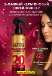 2-фазный спрей-филлер с кератином это профессиональный уход для повреждeнных, сухих, ломких, тусклых и пушащихся волос. формула с гидролизованным кератином, аминокислотами и увлажняющими компонентами восстанавливает структуру волоса по всей длине, создаeт