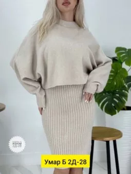 размеры единый (42-50) качество хорошее фабричный китай. цена штучно: 1200руб разные цвета костюм двойка, вязка низ сарафан верх кофта цена оптом: 1100руб (упак. 4шт=4400руб)