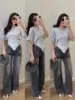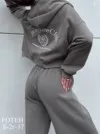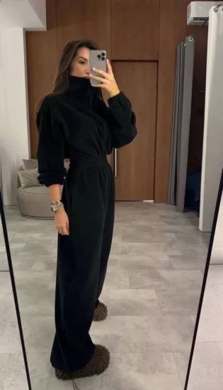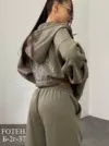 стильный женский костюм-двойка с укороченной толстовкой на молнии и широкими брюками цвета : темно-синий хаки красный коричневый серый-меланж бежевый и лимонный размер: eдиный (42-48) цена: 2000 руб bonnneriee club set / trend 2025 цена опт: 1800 руб